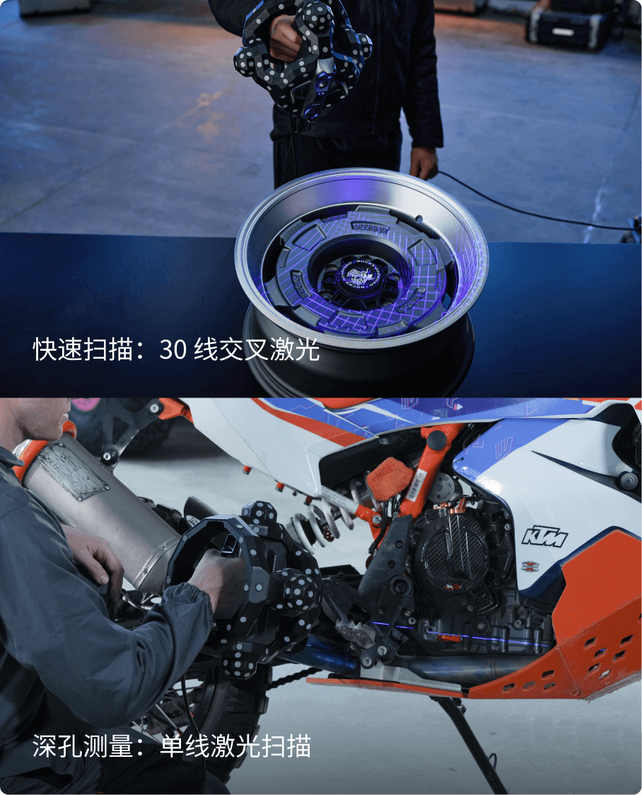 Trackit 跟蹤式三維掃描儀支持 30 束激光交叉線和單束激光一字線兩種掃描模式,可自由選擇,滿足不同的任務需求。