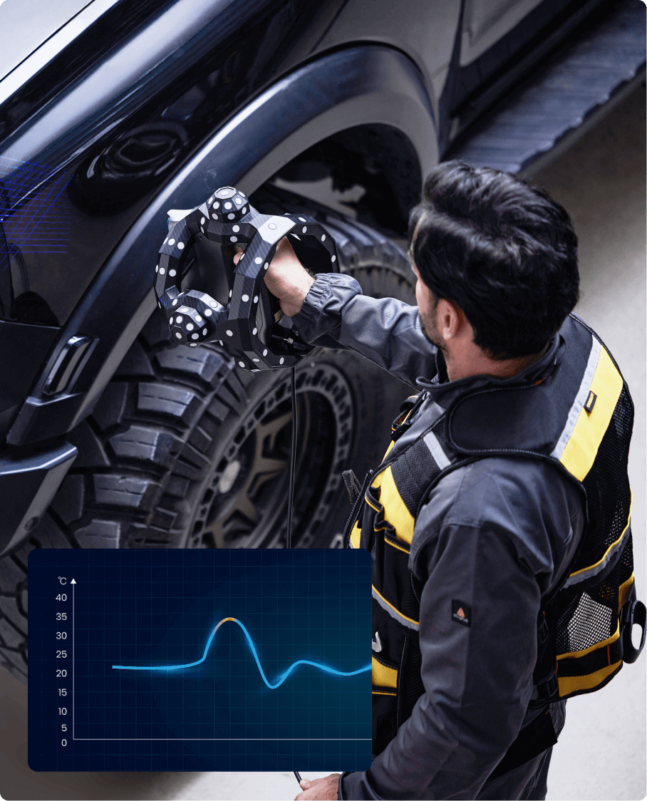 MetroY 系列內置高靈敏溫度傳感器,能夠實時感知監測溫度變化。 同時,軟件提供實時溫度可視化界面,直觀顯示掃描儀當前溫度狀態,提示設備運行是否處于最佳狀態, 有效避免溫度因素導致的精度下降,保障三維掃描精度。