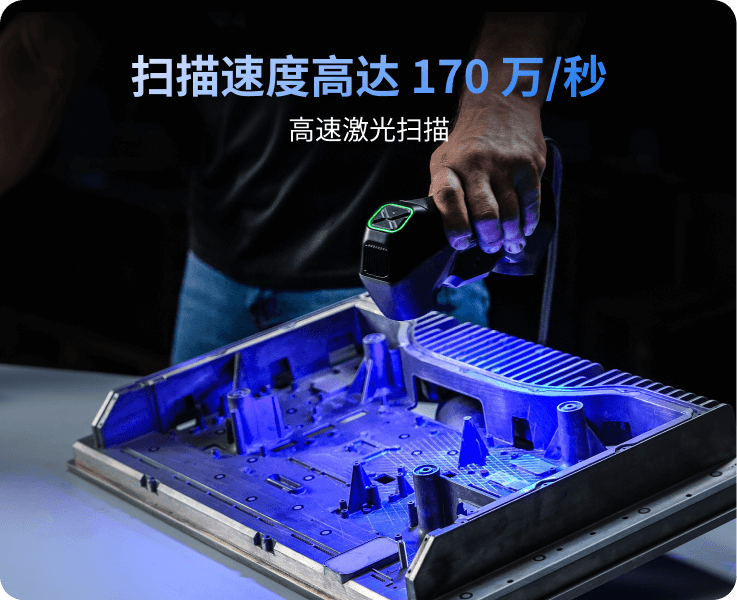 無需噴粉即可精準捕捉平面、高反光及黑色表面,每秒 170 萬點的高速采集,快速獲取精準數(shù)據(jù)。