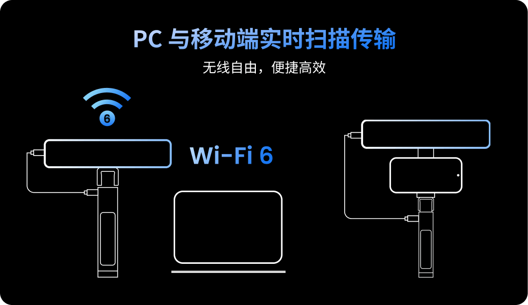 擺脫線纜束縛,自由移動掃描。MetroY 系列通過 Wi-Fi 6 實時傳輸掃描數(shù)據(jù),借助 PC 硬件加速處理,并在設(shè)備或顯示器上的 Revo Mirror 界面實時顯示反饋。掃描過程中可快速識別盲區(qū)或數(shù)據(jù)缺失部位,讓您隨時調(diào)整掃描策略。