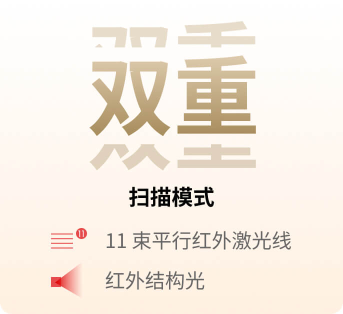 2. 室外掃描時,請避開強烈太陽光直射。 3. 產品采用一級激光投射器,請避免長時間近距離直視投射器!詳情請參閱一級激光標準文件。 4. 本產品有閃光燈,可能不適合患有光敏性癲癇的人群使用。 |