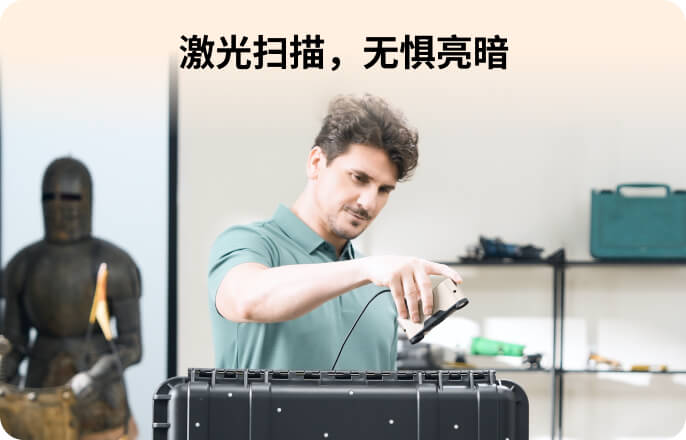 支持在高達 20,000 lux 的戶外環境下掃描,隨時隨地捕捉細節豐富、層次分明的優質掃描數據。