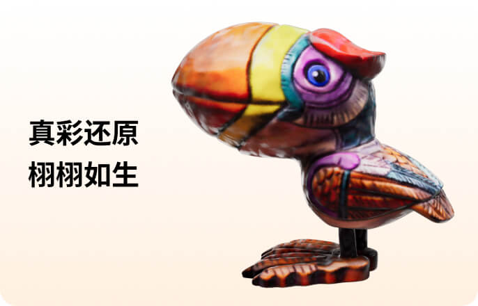 搭載先進 RGB 鏡頭,可精準捕捉生動鮮艷的色彩細節。無論是藝術品數字化、原型掃描還是實物建模,都能真實還原物體本色。