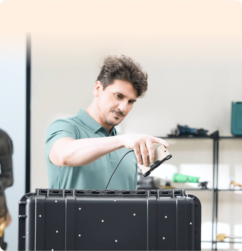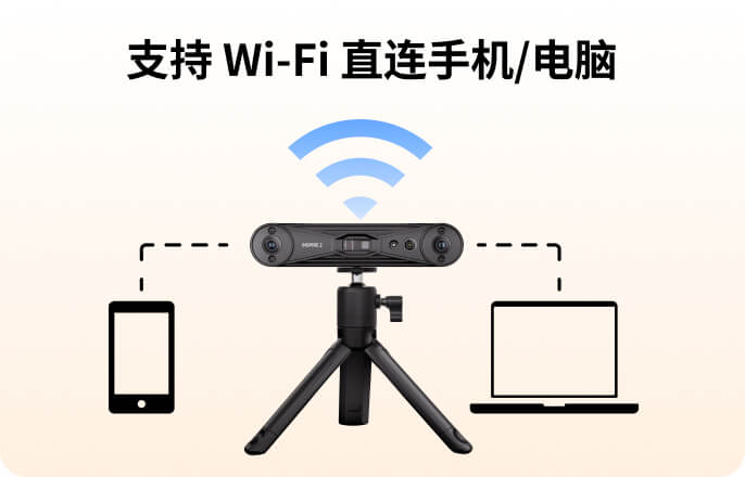 無需昂貴適配器和束縛線纜,通過 Wi-Fi(iOS/Android)或 USB-C(僅 Android )連接智能手機,即可實現移動式結構光掃描。如需更強性能,可通過 PC 供電并啟用紅外激光掃描模式,配合 Revo Mirror 軟件將掃描數據實時傳輸至手機,兼顧桌面級性能與移動靈活性。
