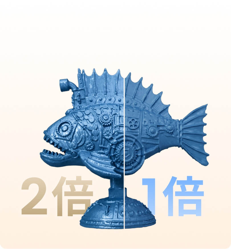 新增光學變焦功能,通過聚焦投射光場,在 1.5× 和 2× 倍率下捕捉到更多的物體表面細節。可根據掃描對象大小進行靈活調節, 兼顧微小細節與整體結構,提升掃描的適配性與便利性,適合中型物體的多樣化需求。